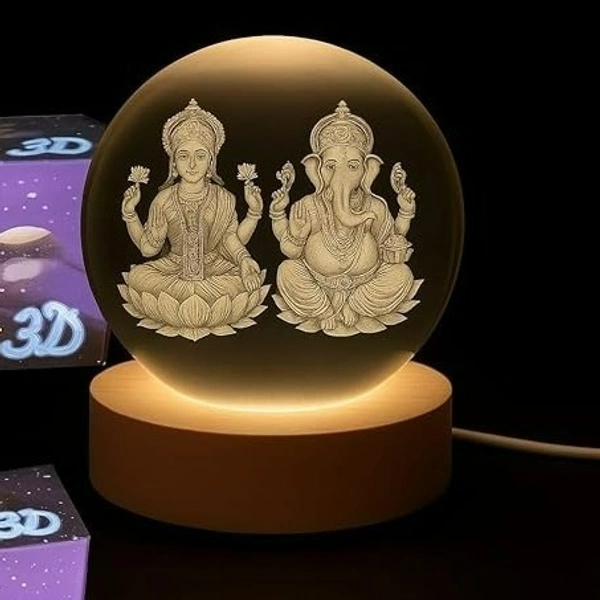 Bizboost Lakshmi Ganesh Crystal Ball Lamp with Wooden Base