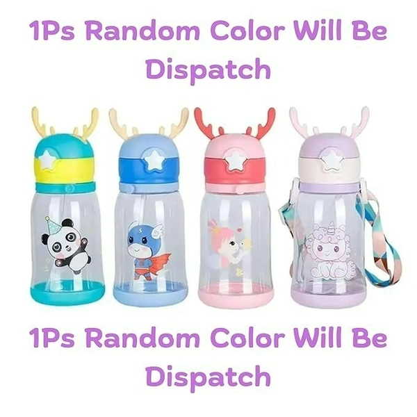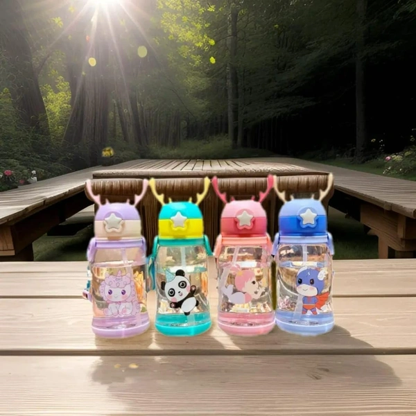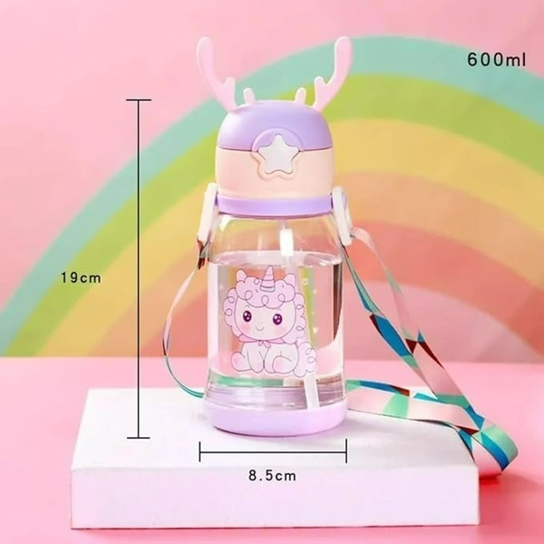 Cute Deer Horn Water Bottle 600ml – Leakproof BPA-Free Bottle with Straw (Random Design)