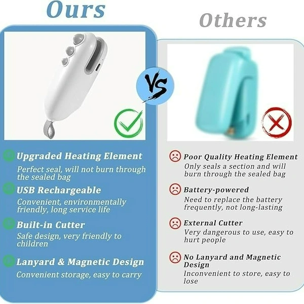 - Portable Design: Small and lightweight, this sealer fits perfectly in your hand and can be stored easily when not in use.
