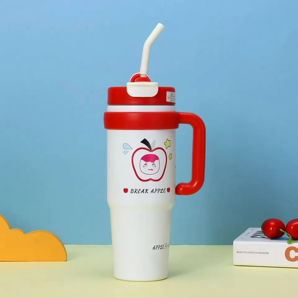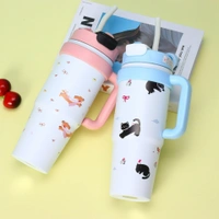 New Cartoon Print 316 Stainless Steel Vacuum Insulated Ice Cup Portable One Lid Dual Drinking Straws