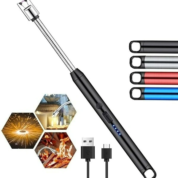 Rechargeable Electric Kitchen Gas Lighter for Cooking Stove | 360° Flexible Neck Plasma Arc | Flameless Windproof USB Lighter (Random Color)